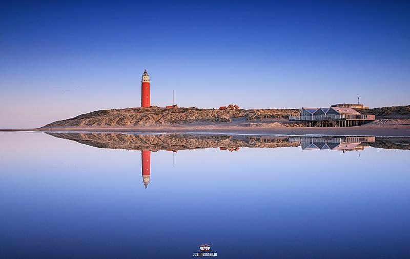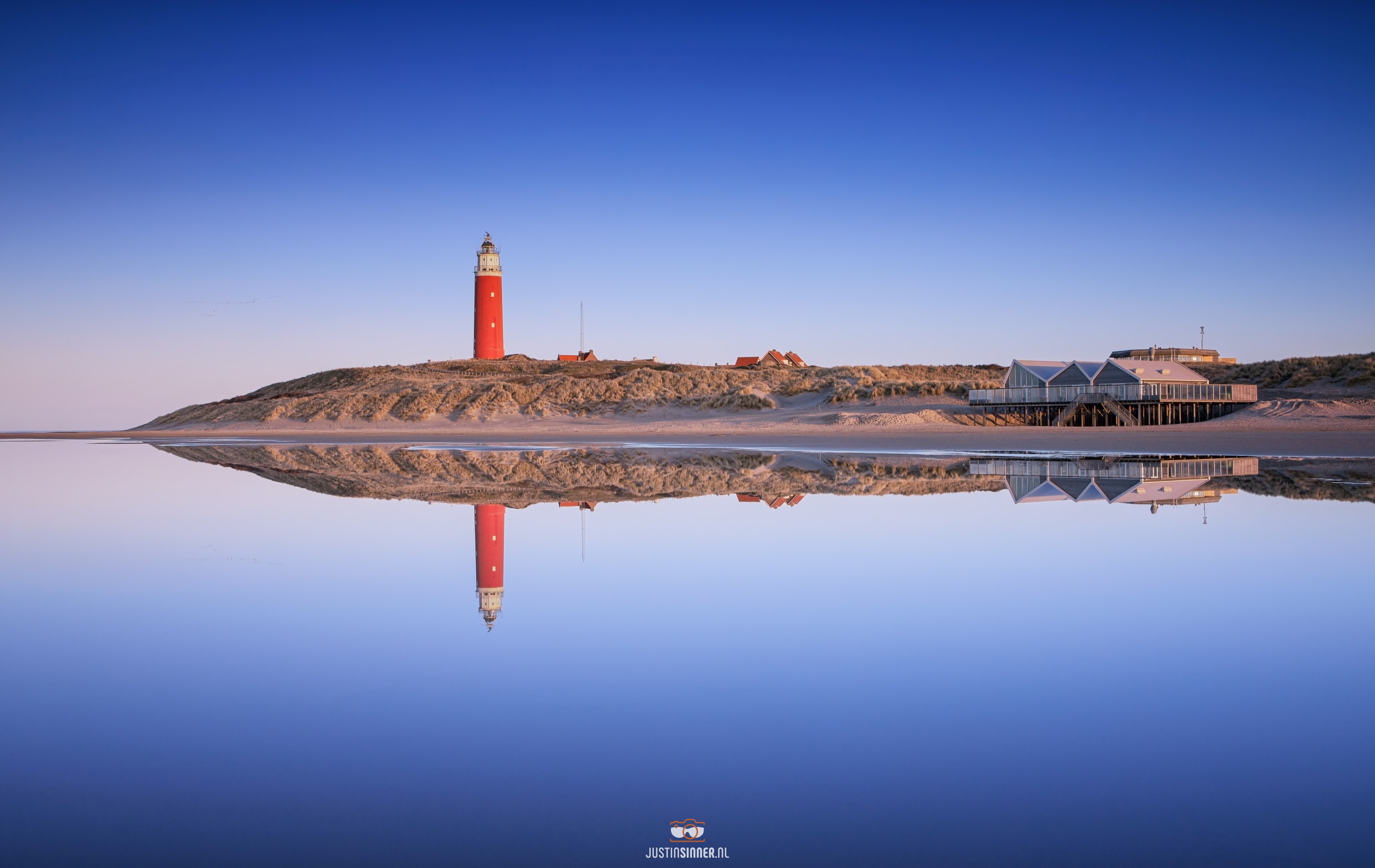 Net voor zonsondergang nog even naar het strand, windstil, mooie spiegeling en een strak blauw/paarse lucht. Prachtig licht en koud. #Texel #justinsinner #vuurtoren #windstil #waddeneiland #fotografie #canonnederland