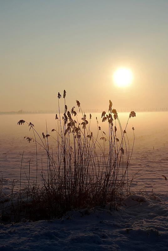 En dan de zonsondergang, mooi. In het poldergebied tussen Oss en Nuland.