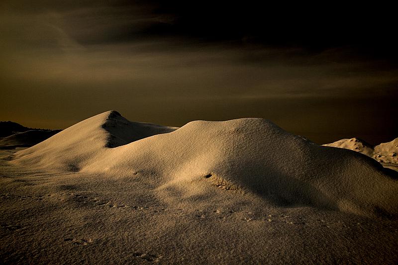 Genomen bij Etten Leur: besneeuwde zandhopen naast een nieuw te bouwen wijk. Het lijkt net een bergmassief maar ze zijn maar enkele meters hoog!