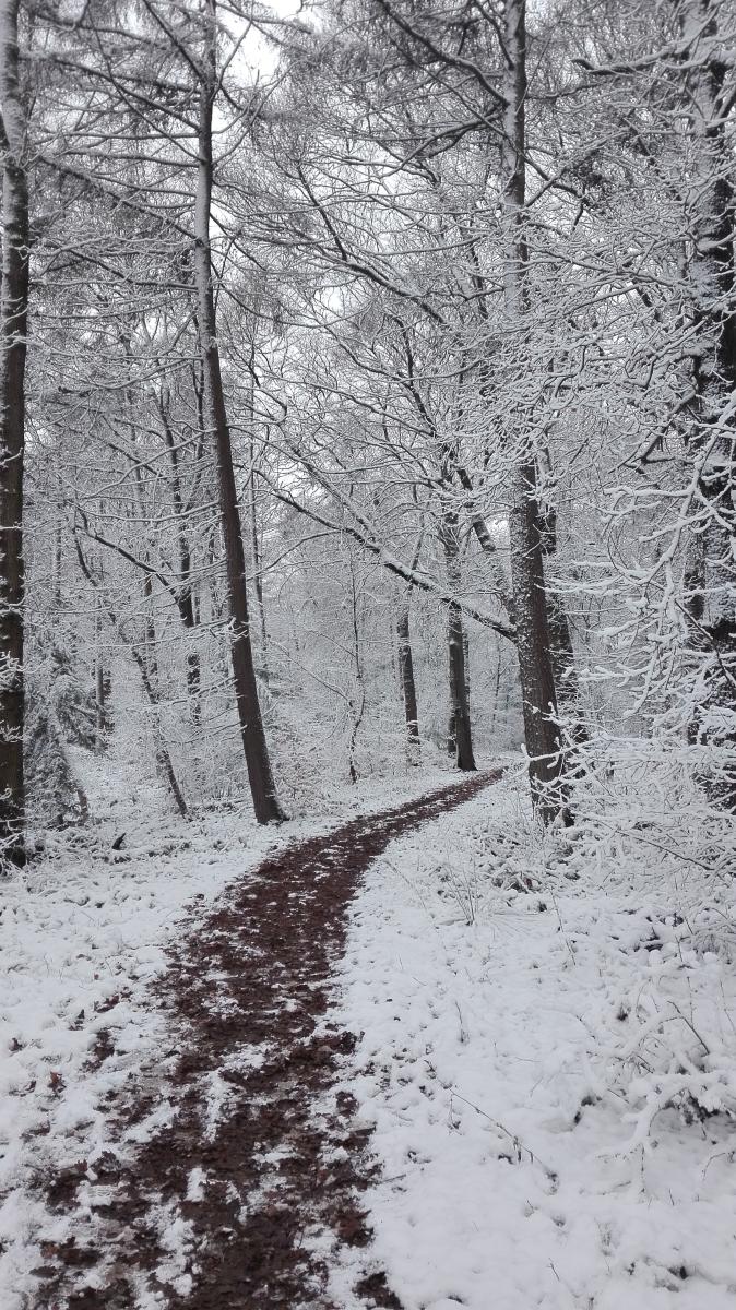 Ik was even het bos in gegaan toen het had gesneeuwd en probeerde toen wat mooie foto's te schieten. Dit is hem uiteindelijk geworden. Een echte sneeuw wandeling is het bos.