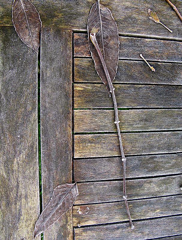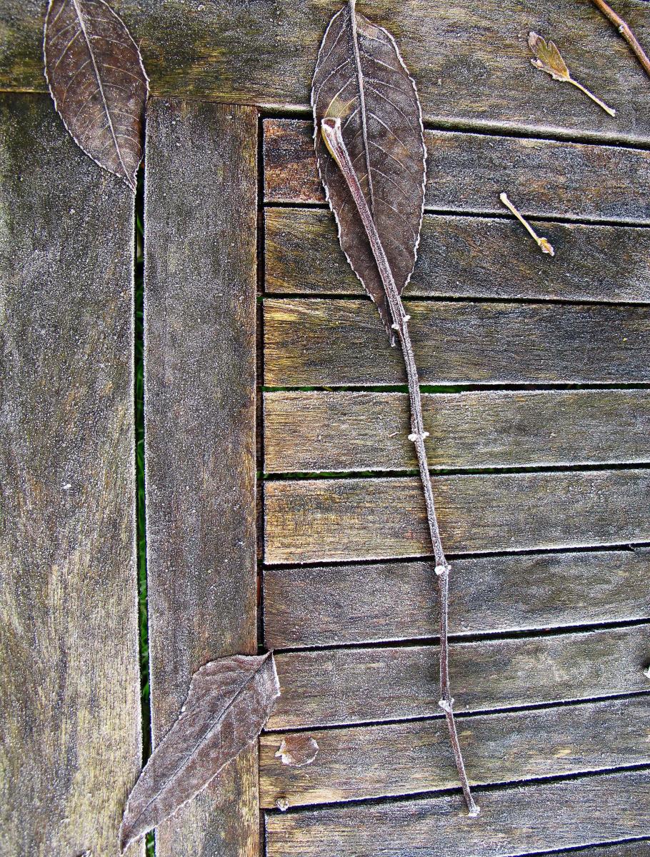 net een schilderij dit tafeltje met rijp. Foto is gemaakt s'morgens vroeg.