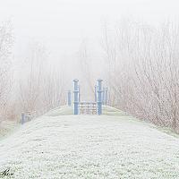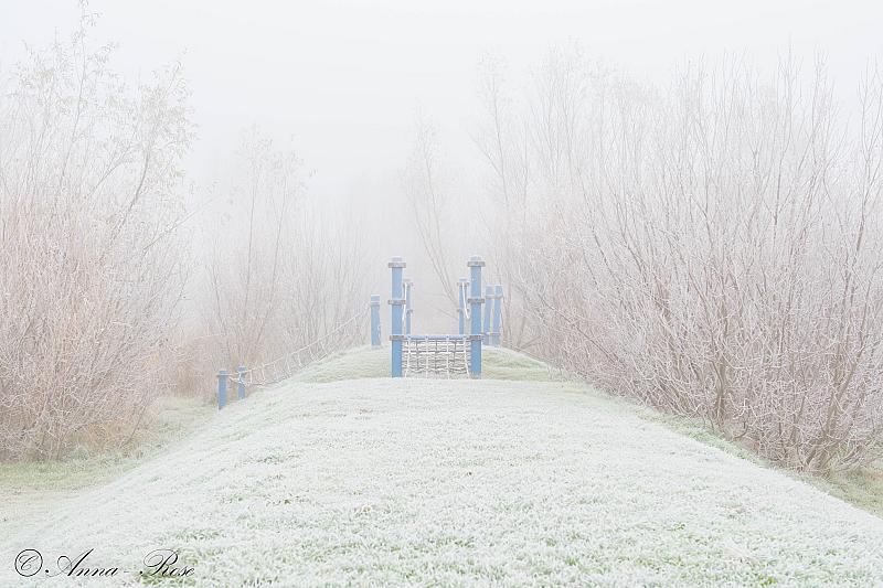Een natuur speeltuin bij ons in de buurt. De kindjes kunnen er nu nog niet op spelen, maar het gaf een waanzinnig mooi beeld zo met de mist en sneeuw!