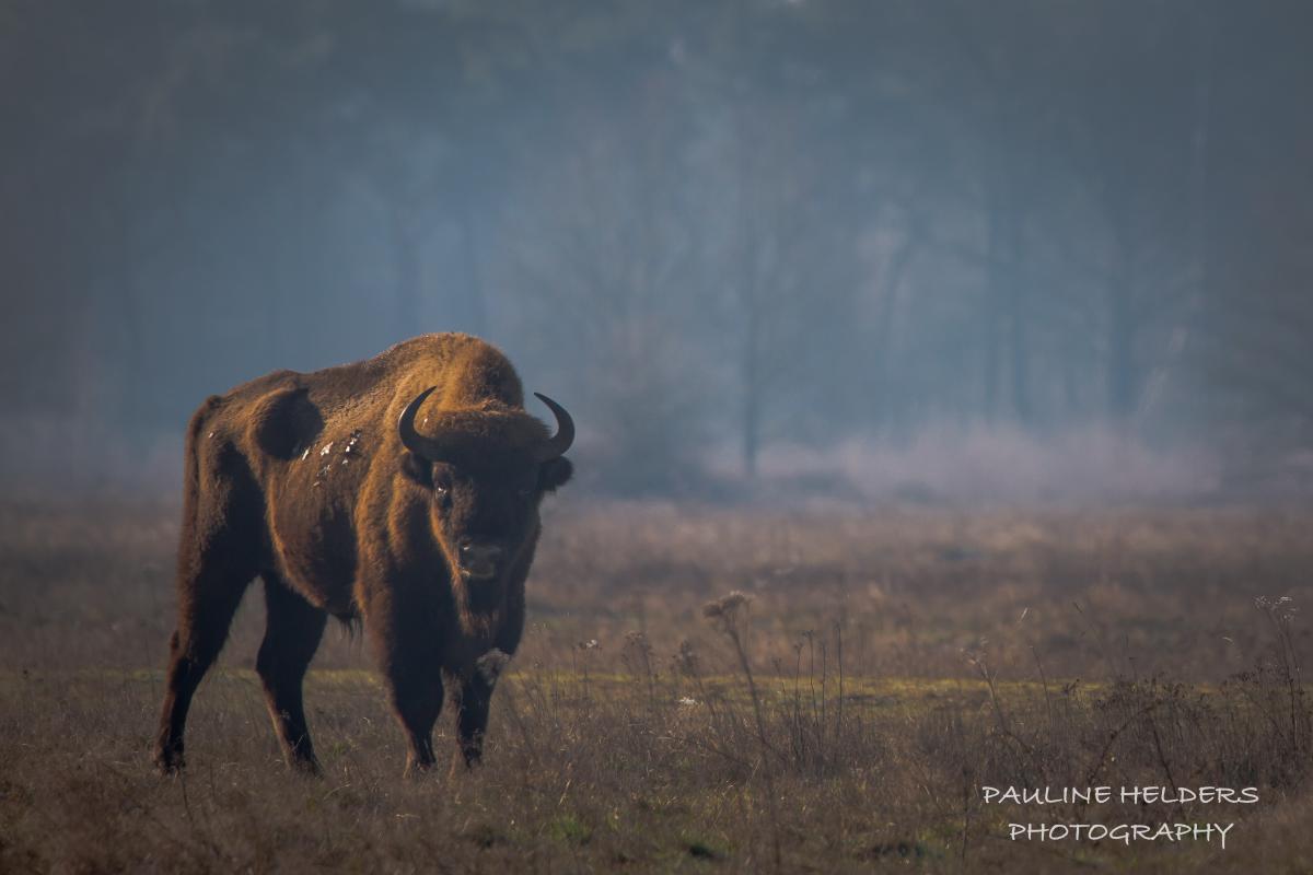 Wisent (Euopese bizon) in natuurgebied de Maashorst