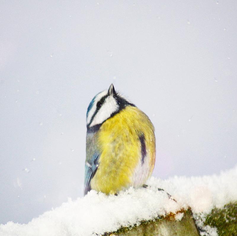 Dit koolmeesje kreeg geen genoeg van de sneeuw! Hij bleef er maar naar kijken...