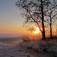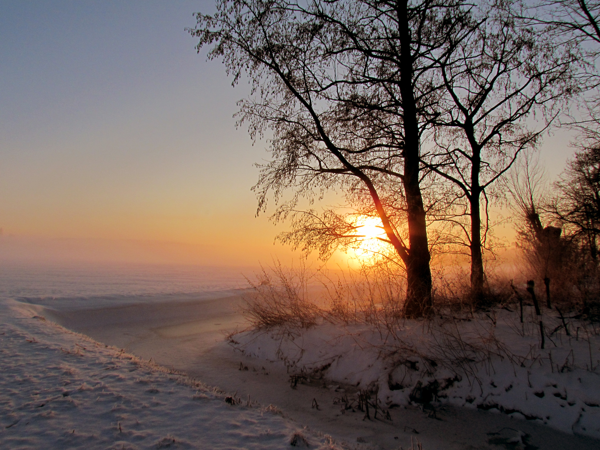altijd mooi: mist bij zonsopkomst boven een sneeuwlandschap