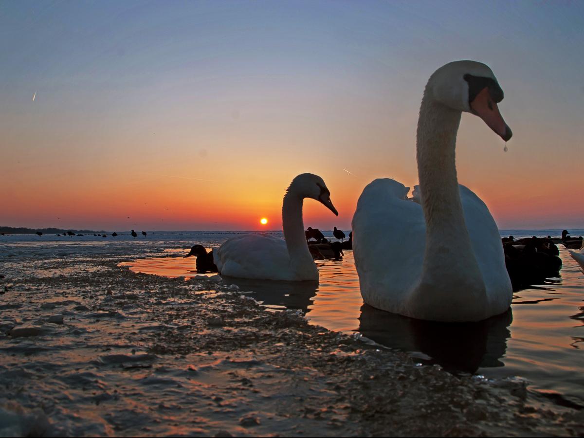 Winter, ijs, zwanen, Harderwijk, Wolderwijd