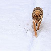 wolf op stap in de sneeuw