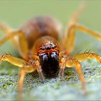 Een close-up van een kleine Wolf-spin.