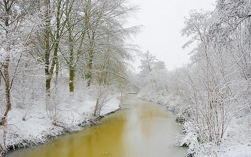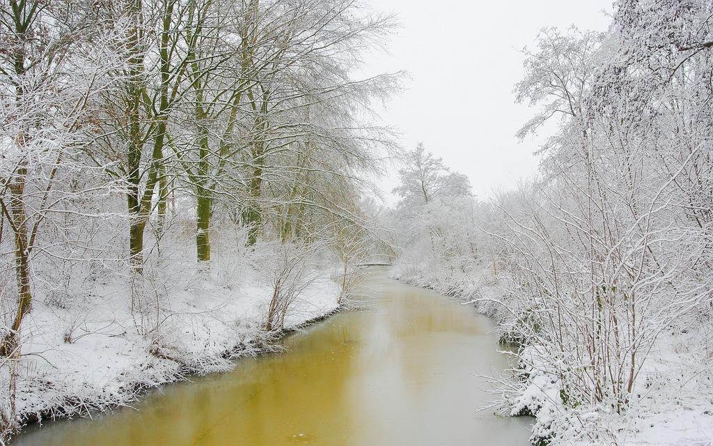 De geel/bruine water in de sloot geeft aan deze landschapsfoto wel een heel apart accent