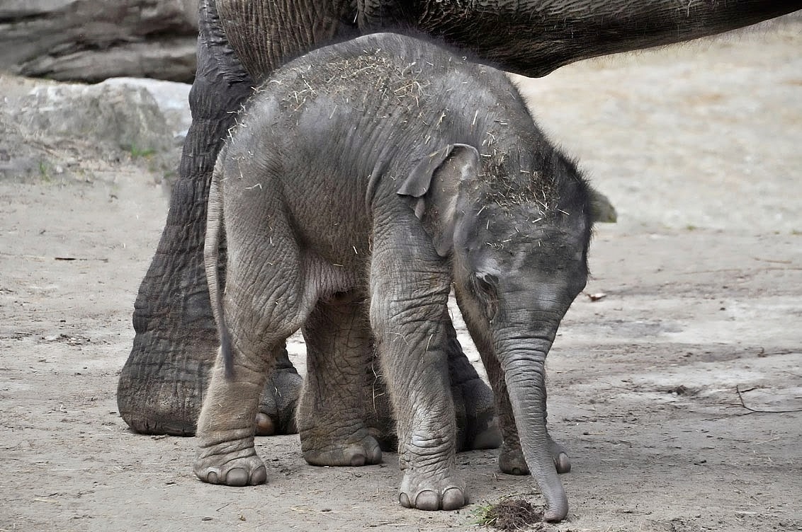 Het babyolifantje Yuna, geboren 25 maart 2017 in Dierenpark Amersfoort. Wat is ze leuk!