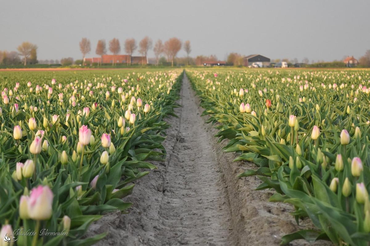 Tulpen in allerlei kleuren op Goeree-Overflakkee in de omgeving van Herkingen.