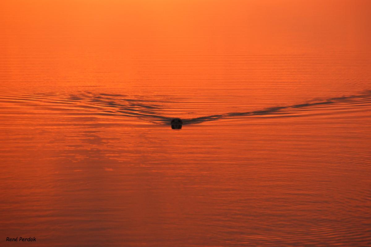 Zeehond met opkomende zon