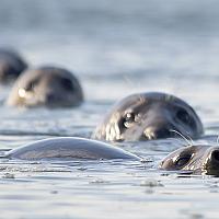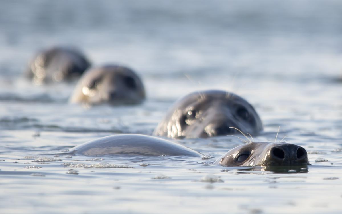 Deze 4 grijze zeehonden kwamen mooi in een lijn op mij afzwemmen. Ik lag daar zelf al te wachten.