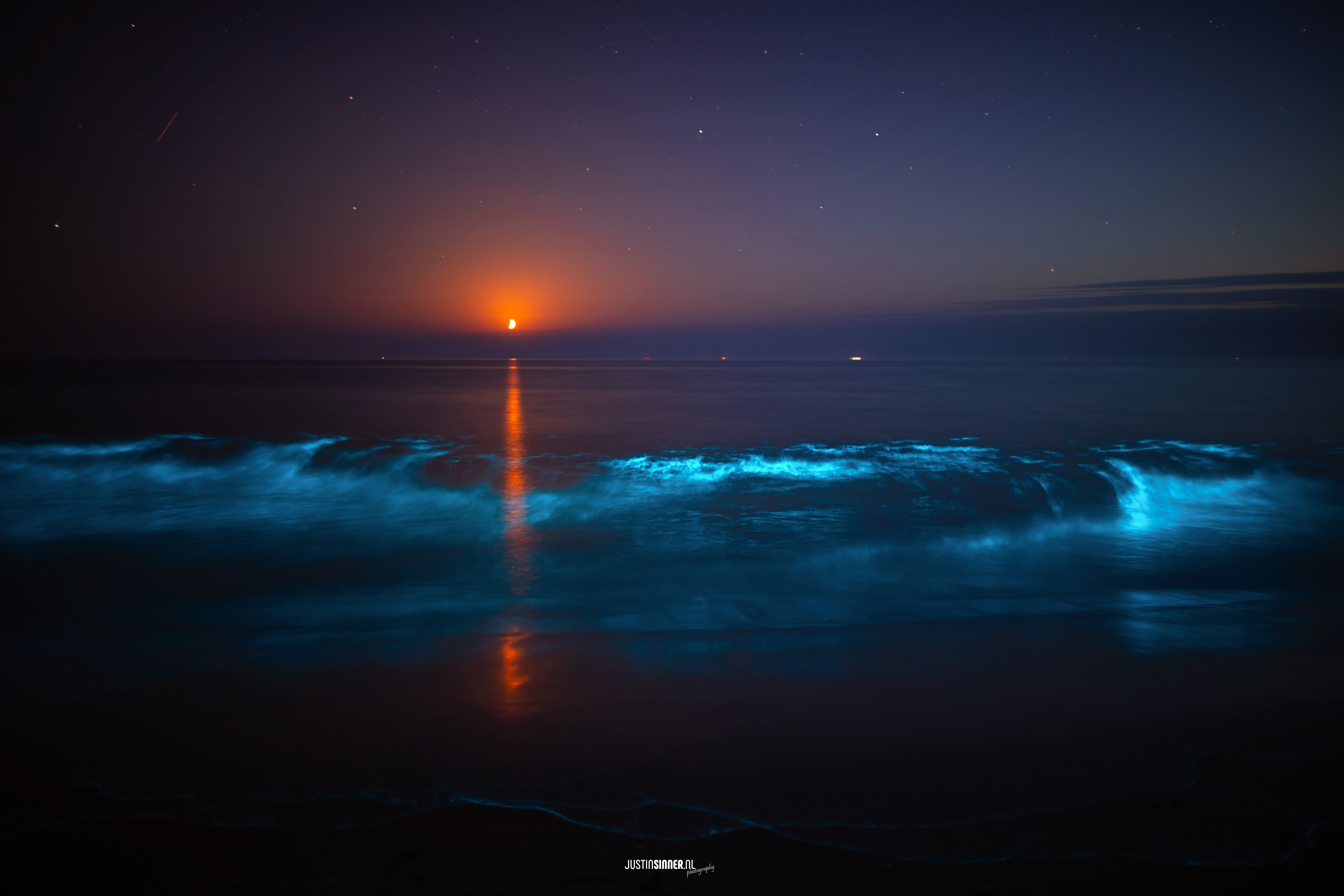 Finally, after 35+ attempts🤪, I managed to photograph sea sparkle! Every time I was just in the wrong place… but how magical it was with the setting moon!