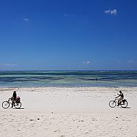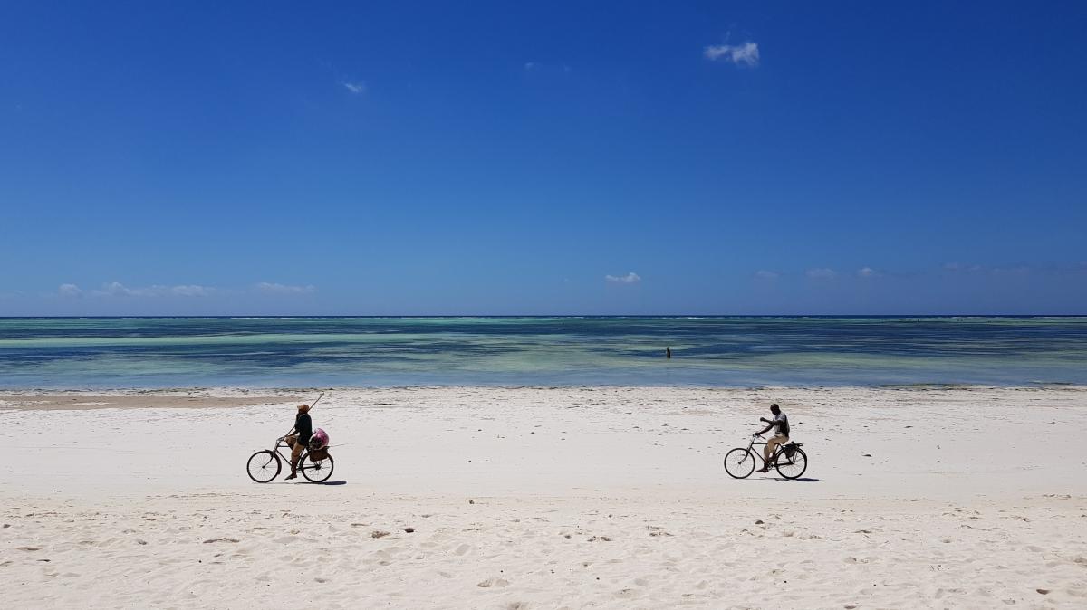 Zeewierboeren op Zanzibar keren terug naar huis met hun oogst per fiets.