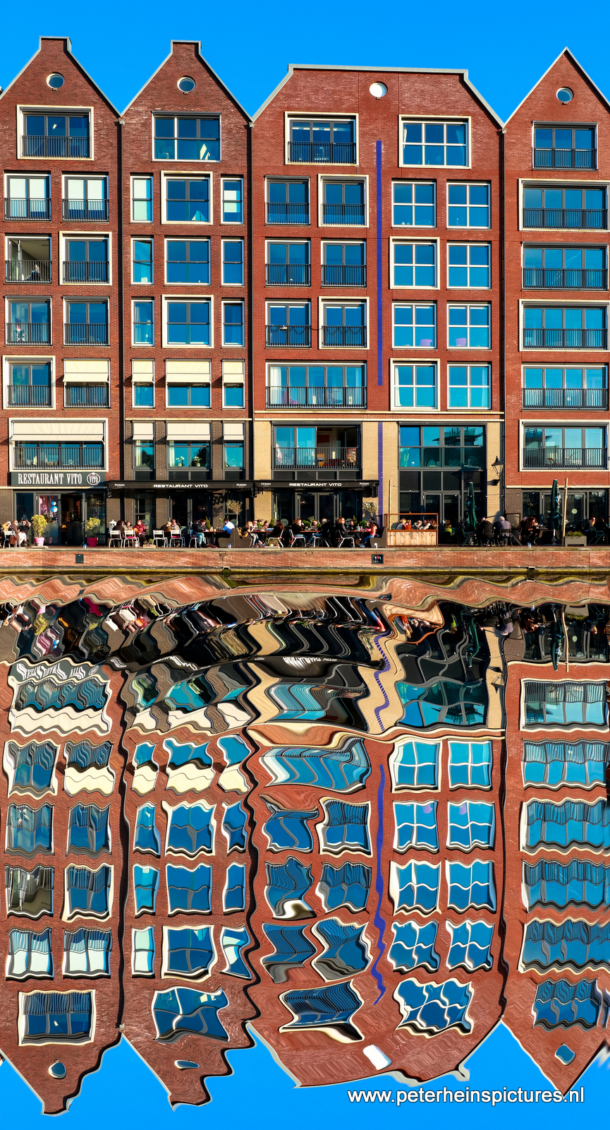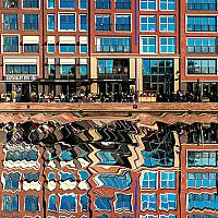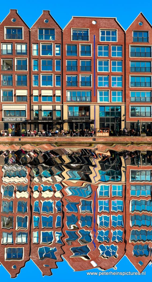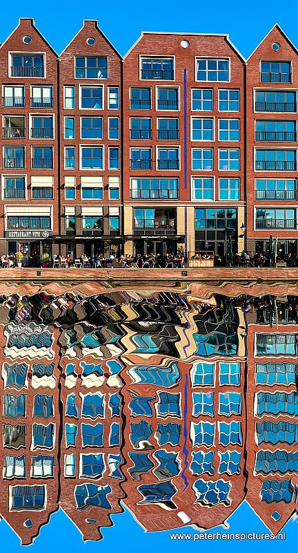 Turfmarkt in Alkmaar. Omdat de spiegeling in het water niet helemaal goed was heb ik nu eens met het gratis programma De GIMP een spiegeling gemaakt. Op zich ging dat vrij makkelijk.