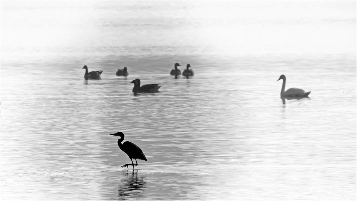 Zilverreiger als een zwart silhouet ...