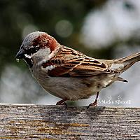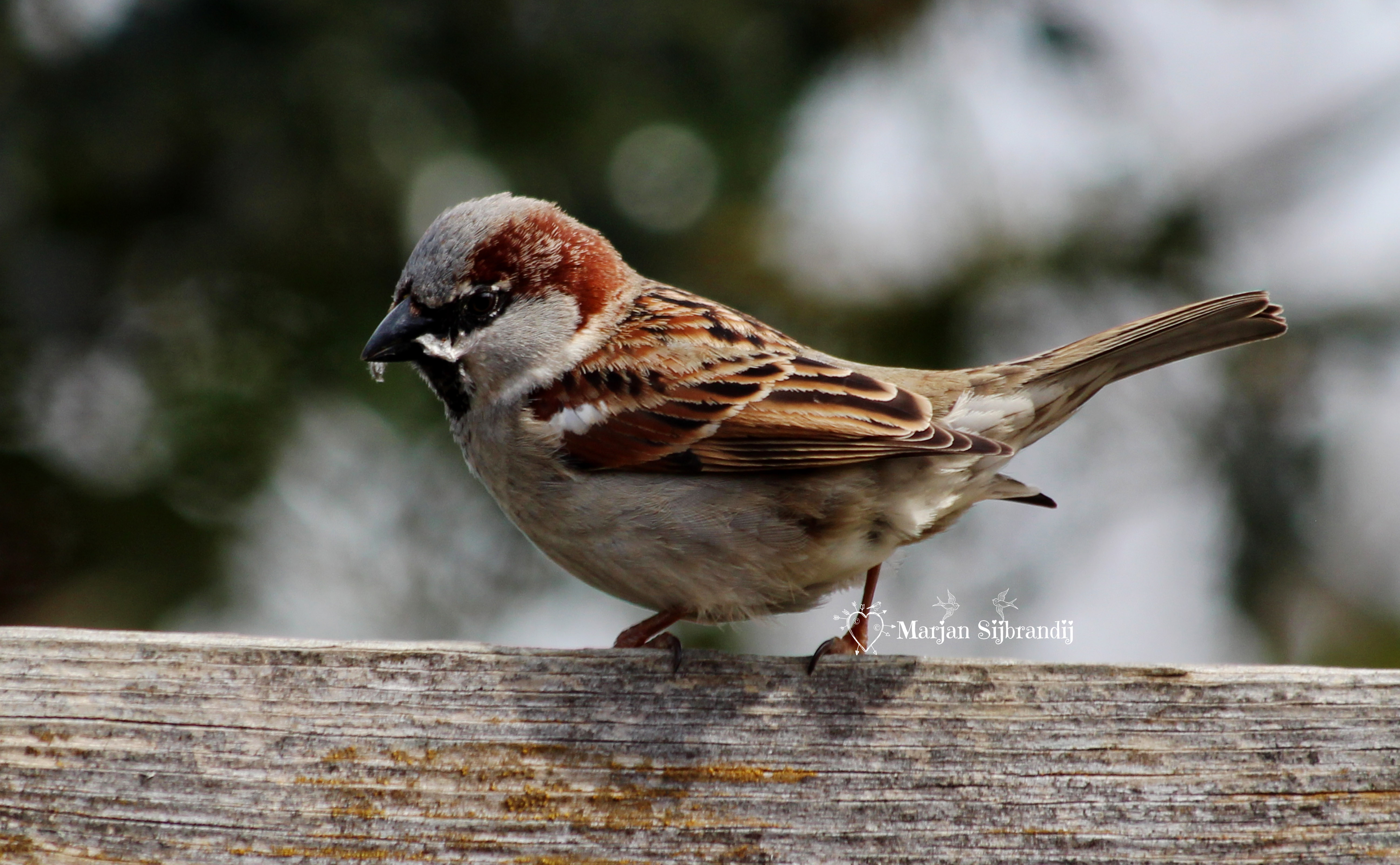 Onder het genot van een bakkie kwam de mus mooi op de schutting zitten.