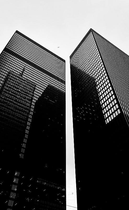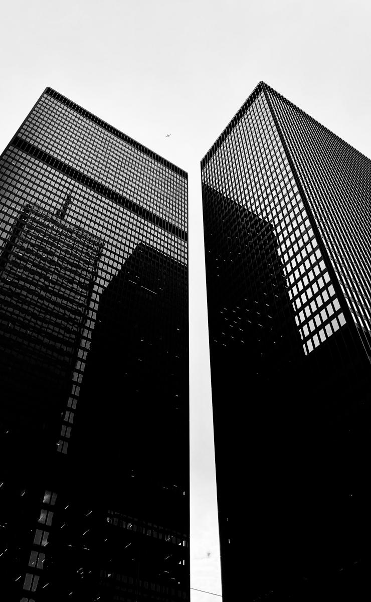 Hoge flats tegen bewolkte achtergrond. Zoek het vliegtuig :)