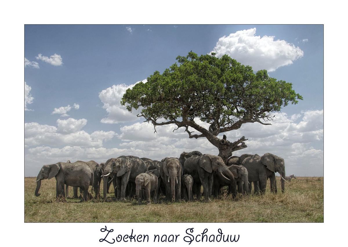 op de eindeloze vlaktes van de serengeti np in Tanzania zoekend naar wat schaduw