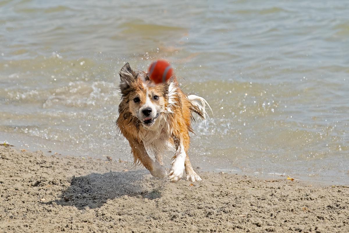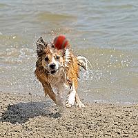 Border collie in actie bij het water.