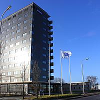 de zon weerkaatst in de ramen van het gebouw gefotografeert met een canon 500D
