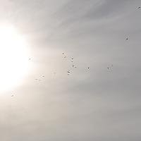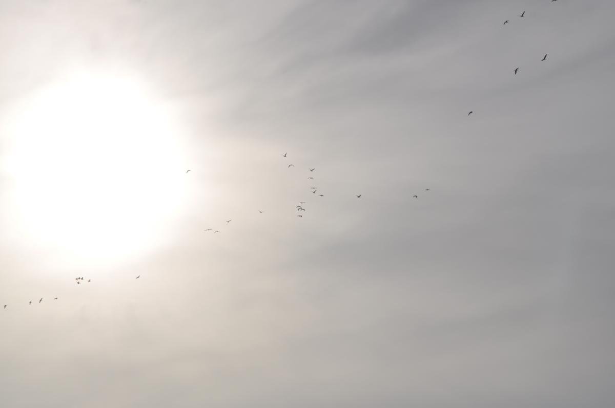 Felle ondergaande zon met vliegende ganzen