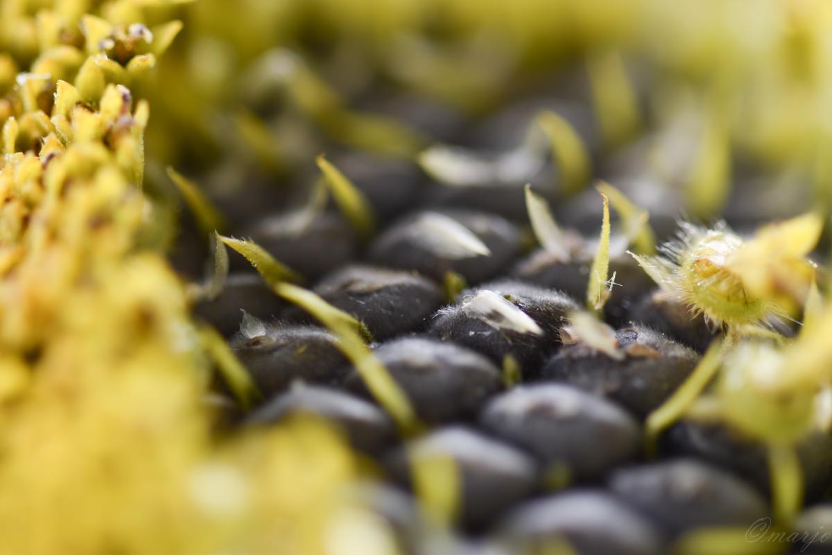 Wat een kunstwerkje, zonnebloempitten van dichtbij.