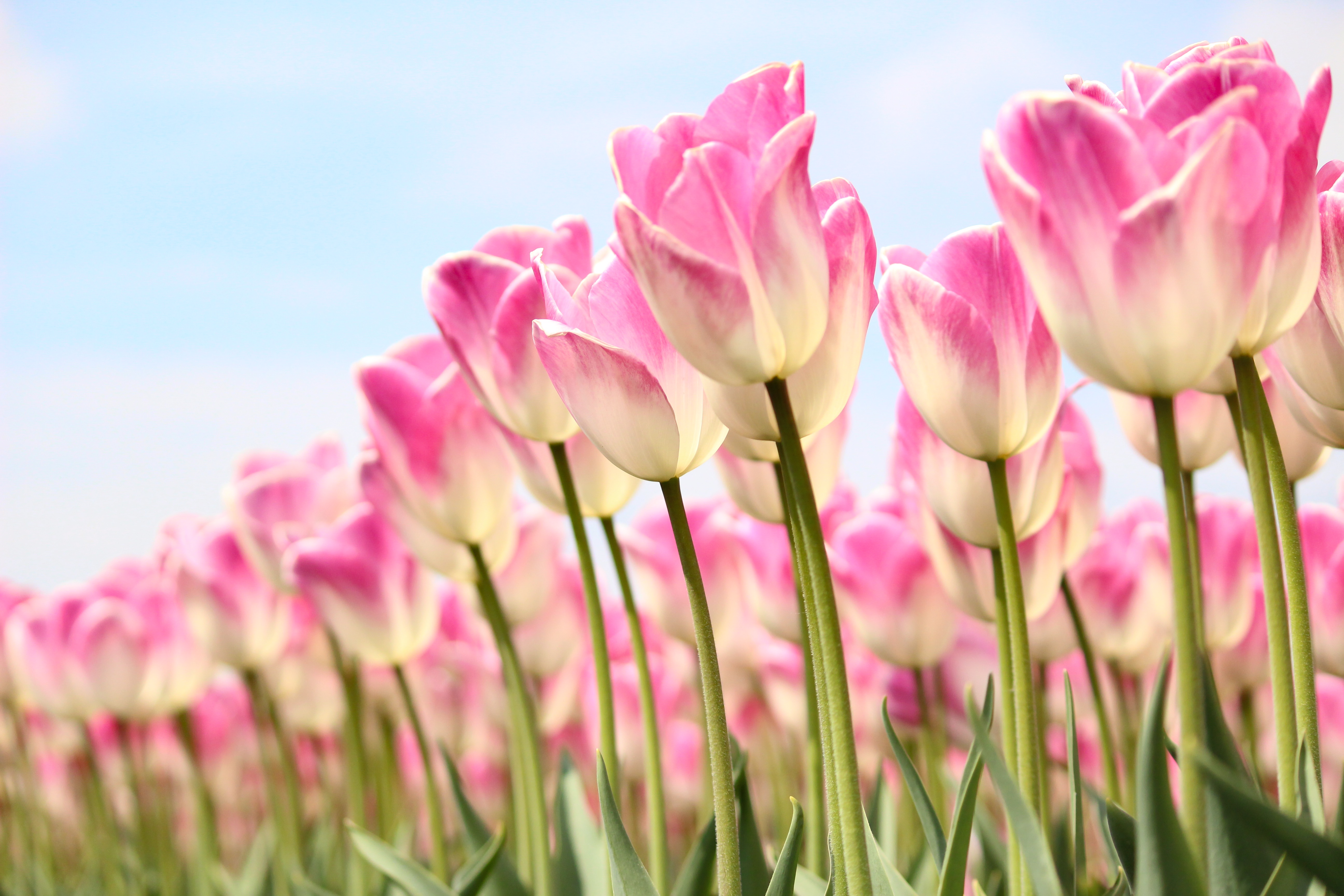 Zonnige roze met witte tulpen