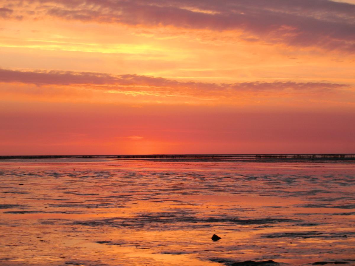 Zonsondergang bij de Noordkaap, het meest noordelijke punt van Nederland.