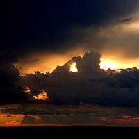 Aan de kust van Zandvoort pakten donkere wolken zich samen maar voor dat de regen ging losbarsten, kon de zon nog mooi ondergaan. De stralen drongen nog achter de wolken door de hoogte in. Prachtig!!