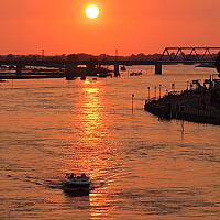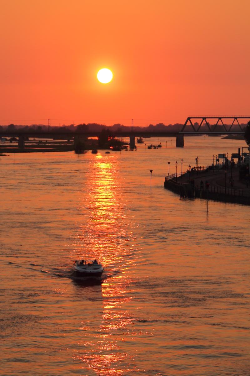 mooie zonsondergang vanaf de wilhelminabrug in deventer