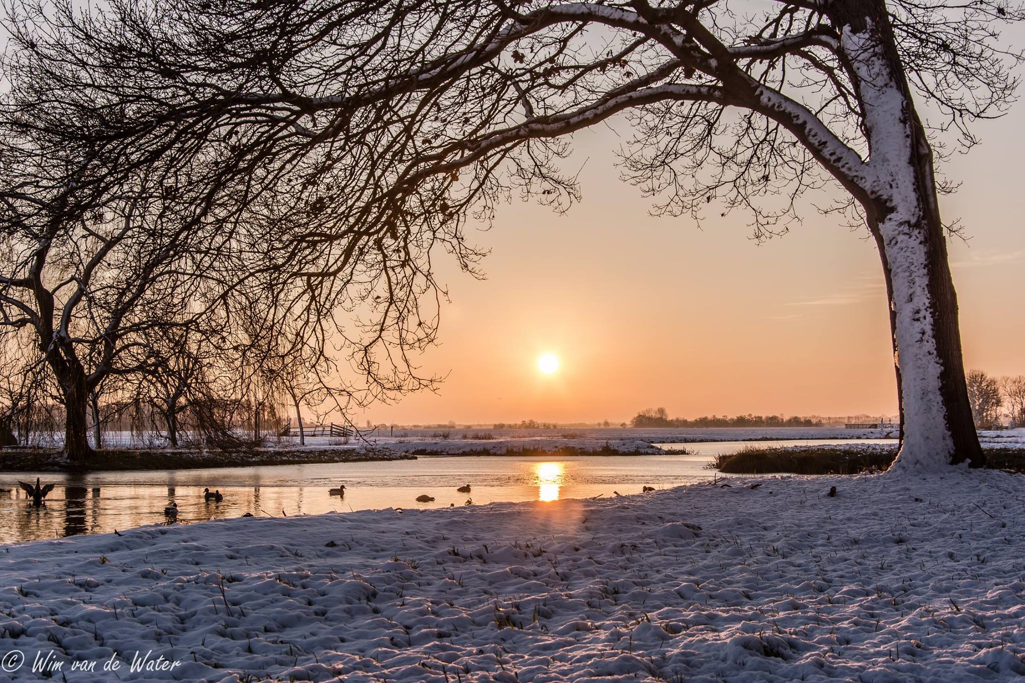 Foto genomen op 28 december tijdens zonsondergang in de polder van de Krimpenerwaard.