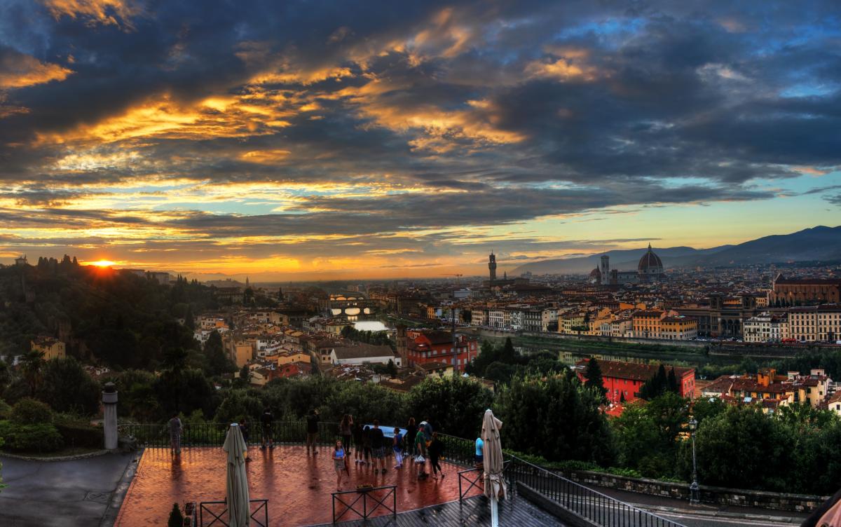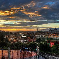 Florence is een prachtige stad om rond te wandelen, te eten en natuurlijk foto's te maken. Vanaf Piazzale Michelangelo heb je een adembenemend uitzicht over de stad vanaf de andere kant van de rivier. Op deze dag had het geregend en ik gokte erop dat de zon nog zou doorbreken. Zonsondergang op een regenachtige dag geeft altijd de meest dramatische resultaten!