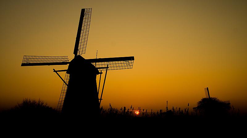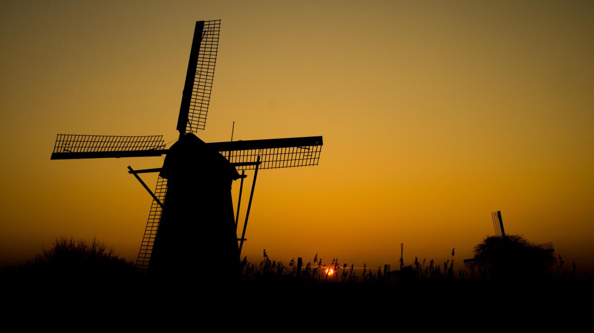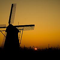 Zonsondergang bij kinderdijk met een prachtig silhouette van de molen!