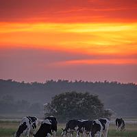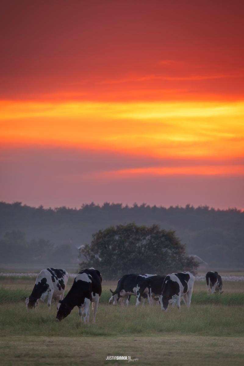 Cows grazing under a beautifully colored sky with clouds, and it even became a bit misty, sometimes the conditions are more than beautiful. Photographed last week near Den Hoorn on Texel.