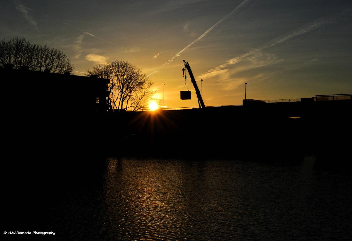 Nieuwe Noordzeebrug in aanbouw.Gezien vanaf de waterkant van het van Starkenborghkanaal.Er komt een helemaal nieuwe brug en weg om meer grote vrachtschepen door het kanaal te laten varen.