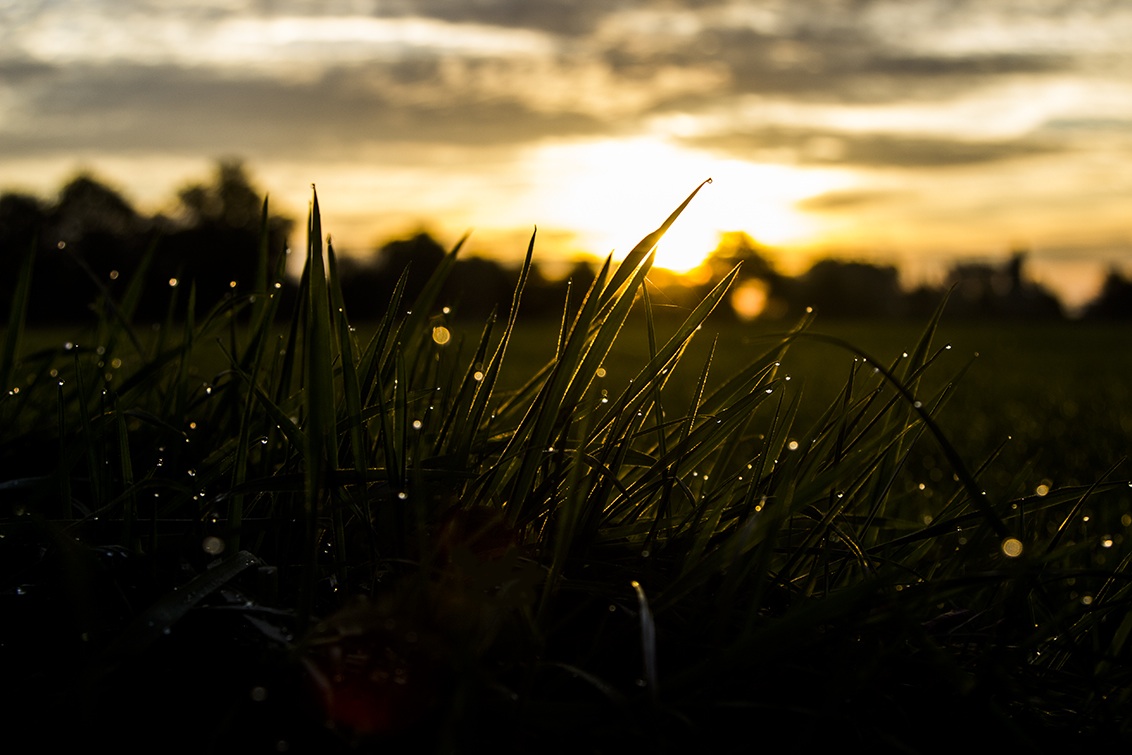 Deze foto heb ik zaterdag 19 oktober gemaakt. De dauw druppels zitten nog op de grassprieten.