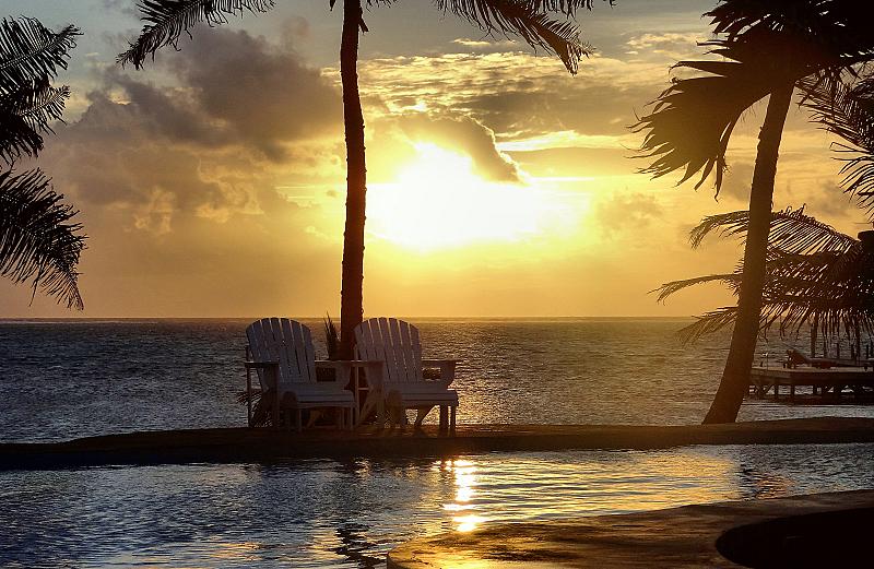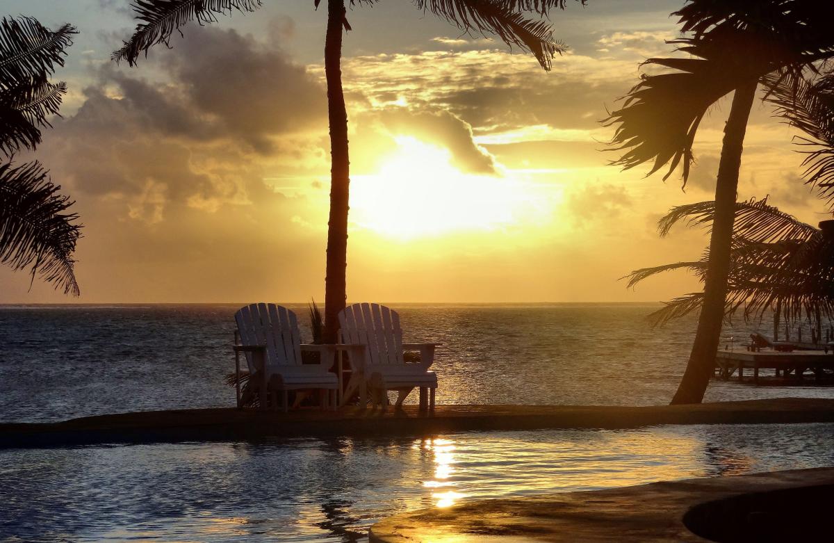 Op onze laatste dagen in Belize op het eiland Ambergris Caye aan de Caribische Zee worden we 's-ochtends verwelkomd door magische zonsopkomsten. In ieder geval een goed begin van de dag.