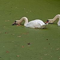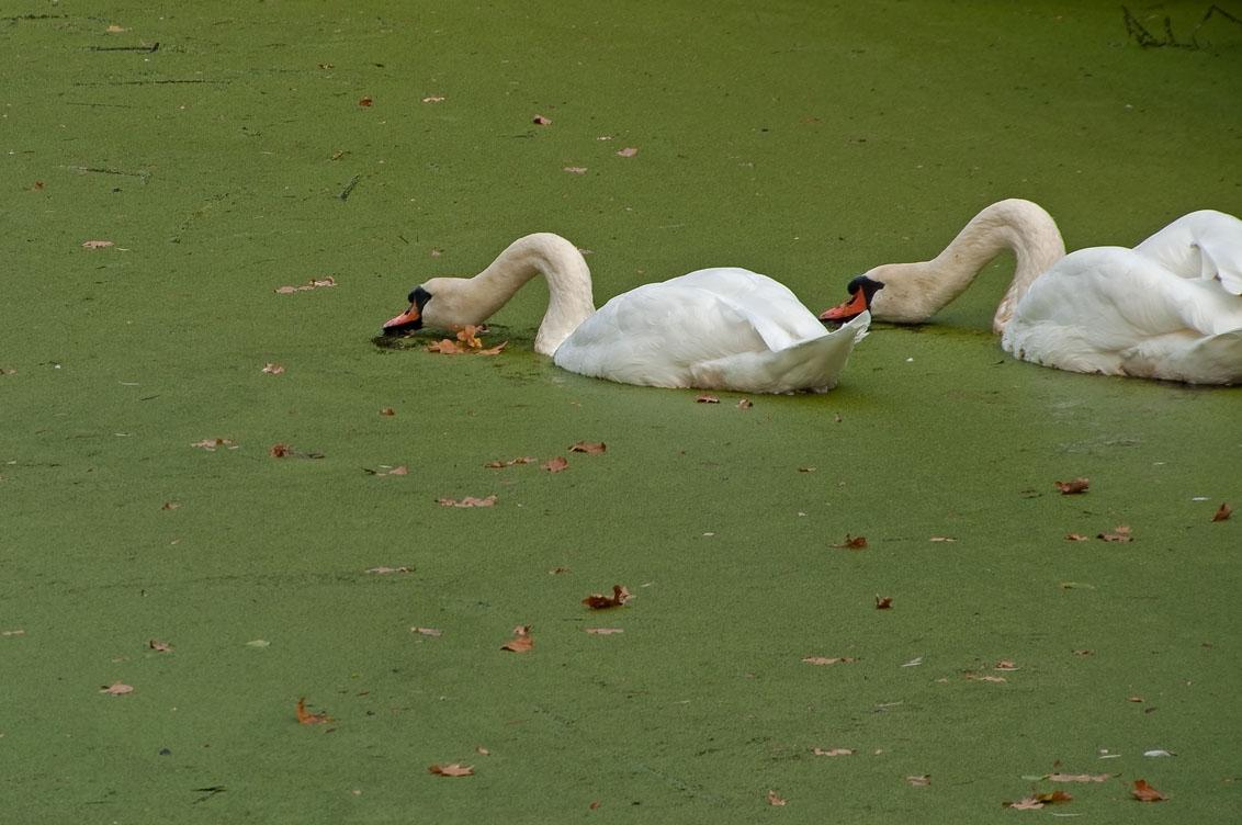 Deze zwanen genieten duidelijk van de overvloed aan kroos/algen in het water......