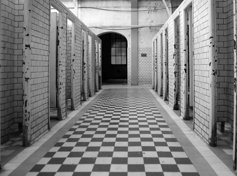 In de verlaten mijnsite, zag ik deze mooie structuur in de vroegere badzaal. Ideaal voor een zwart-wit weergave.
