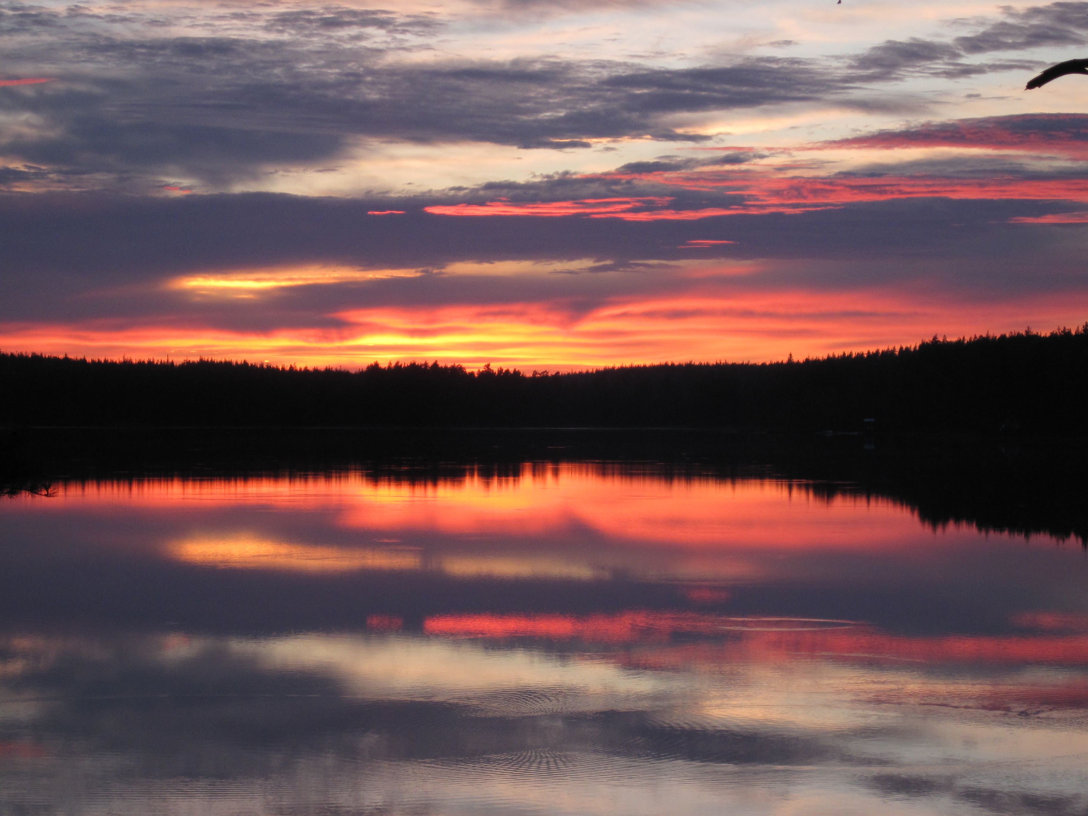 Zweedse zonsondergang bij het meer Sjöström in Småland. Foto genomen met Canon Eos 550D met 18-55 lens.