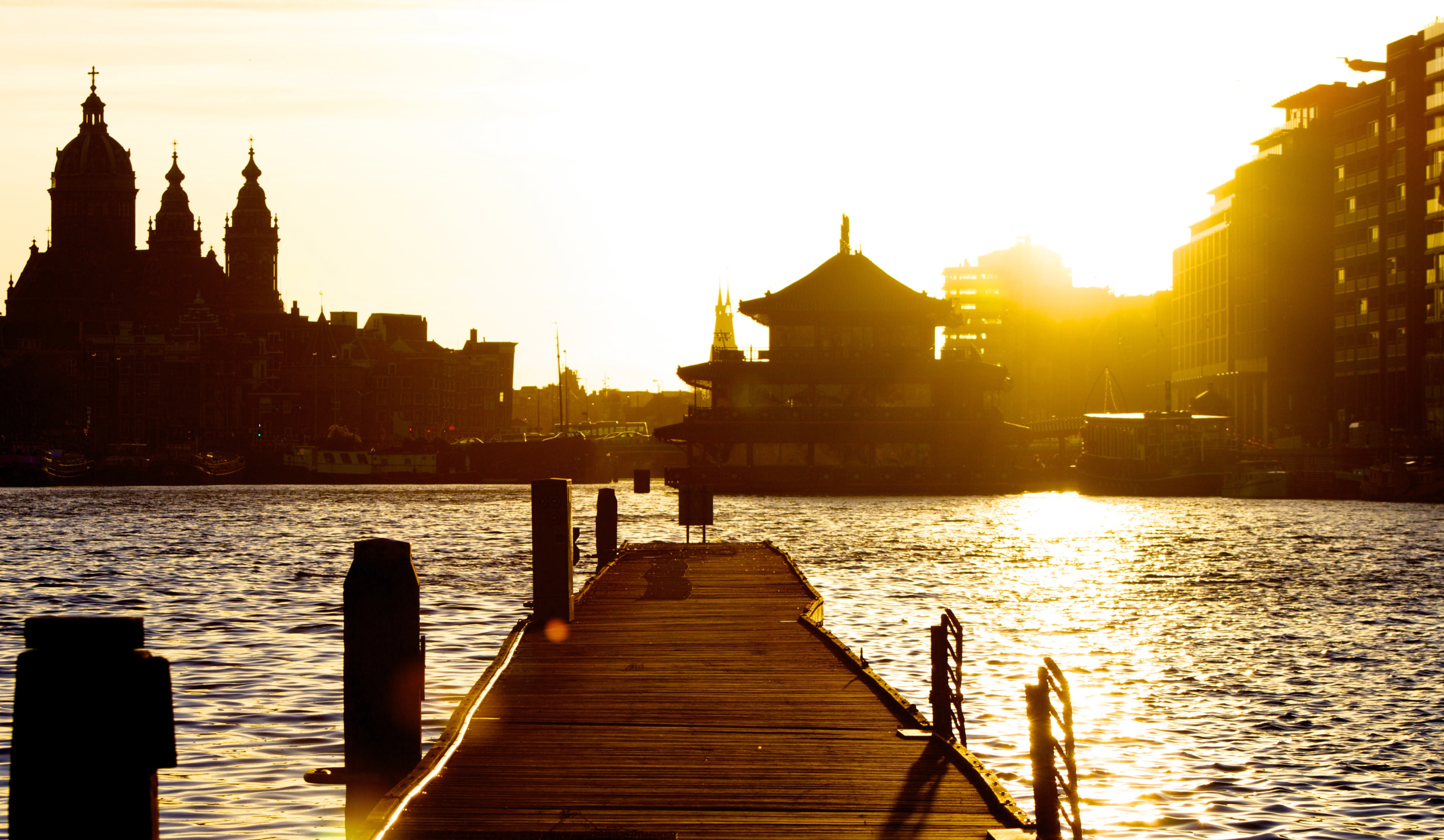 Een mooie avond met ondergaande zon in Amsterdam.